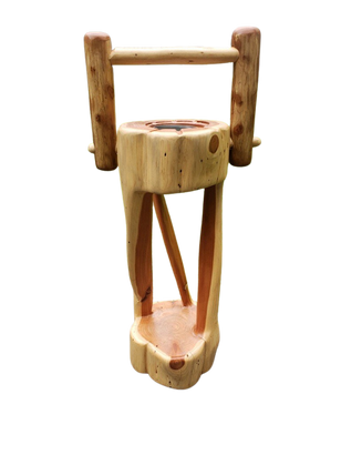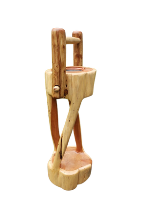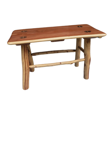 It started when I was a very young kid. I used to sit and talk with my grandfather. He told me about when he was a young kid, and in the mornings the young boys would whittle pegs for the carpenters. Then after lunch they would carry buckets of water to wet down the pegs that the carpenters would drive into the wood. He also explained how in the winter they would sit in the barn and make furniture. It captured my interest as a young child. Throughout my growing up years I’d build different pieces of furniture used pegs, mortise and tenon joints, and dovetail joints. People would stop by to visit me and were interested in my projects. Almost all of the pieces that I would be working on would sell before I would get them finished. I had my own home improvement and remodeling business for over 40 years. Now I’m living my dream of building rustic log furniture. I no longer work, I just live my dream.